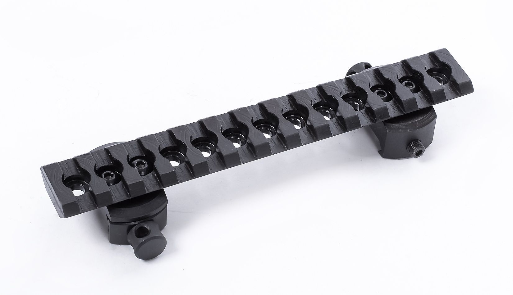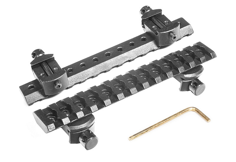 База имеет возможность перестановки стоек с шагом 10 мм для установки на оружие и смещения базы по направлению.