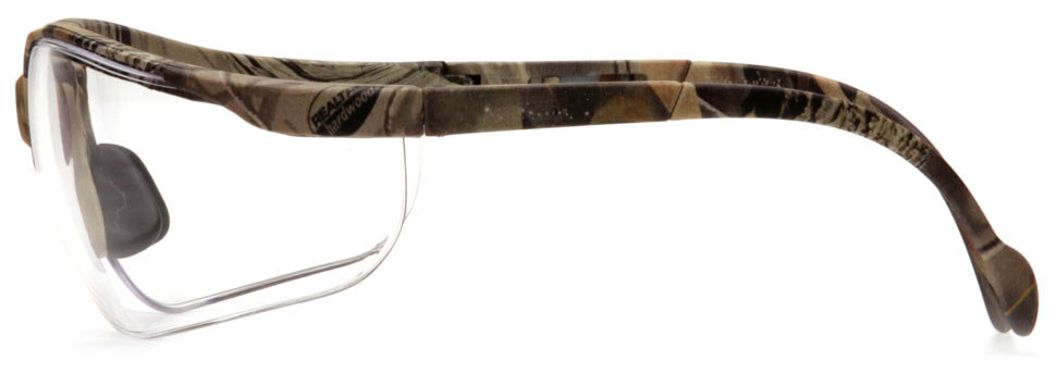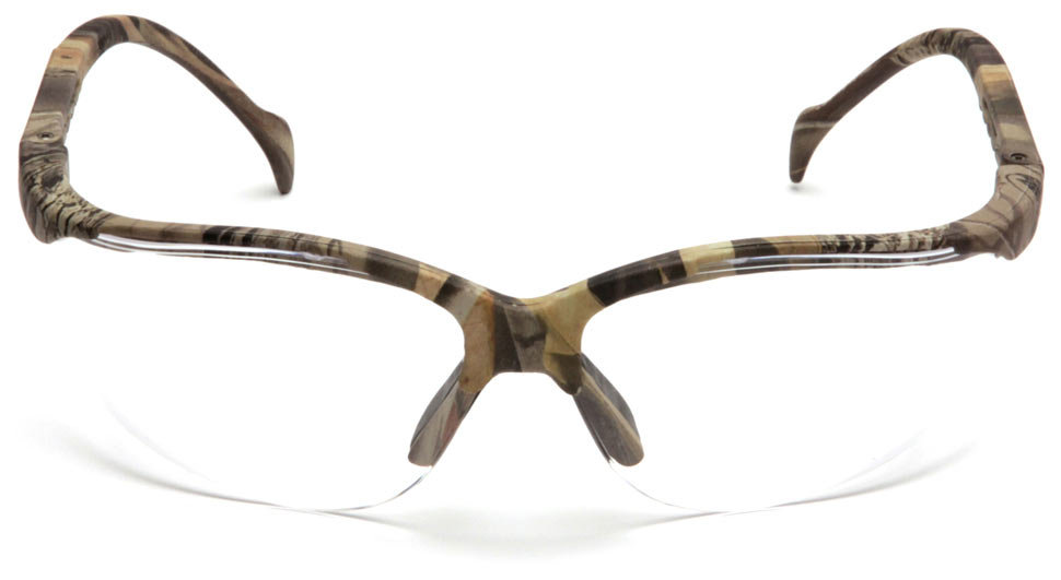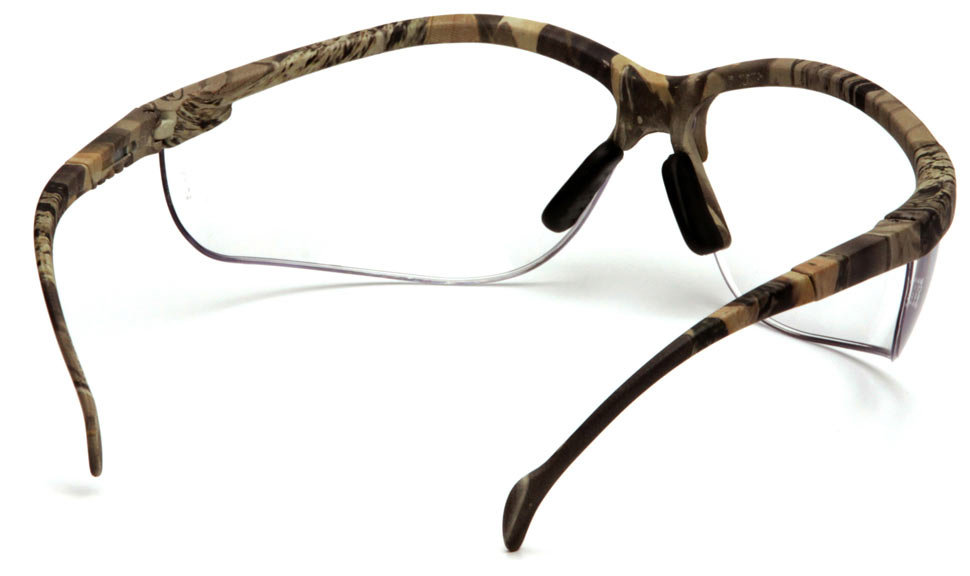 Баллистические стрелковые очки с прозрачными ударопрочными поликарбонатными линзами в камуфлированной оправе.