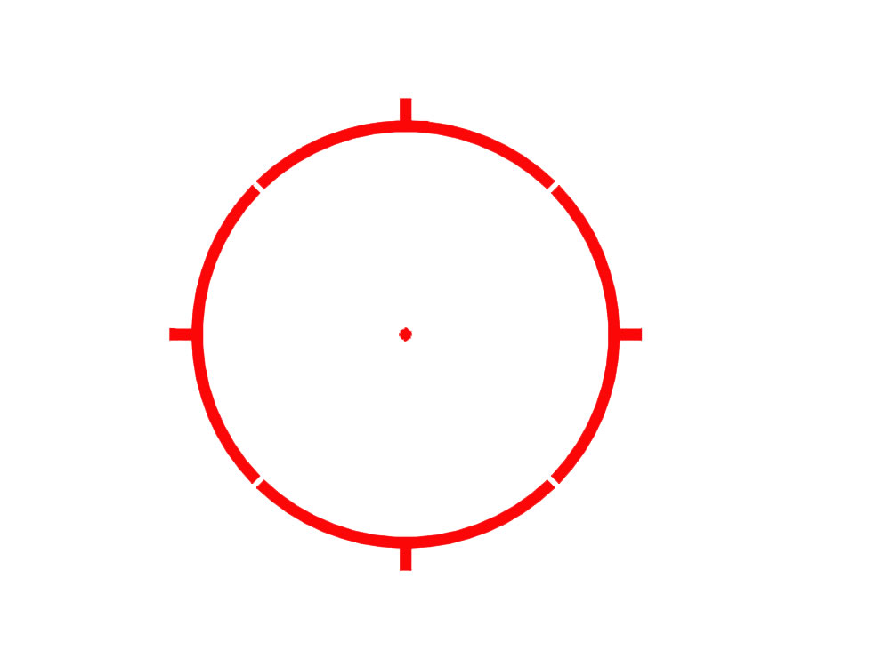 Герметичная электроника в ударопрочном металлическом корпусе делает его водонепроницаемым до 10 м. Прицельная марка (кольцо 65 МОА с точкой 2 МОА) позволяет выполнять как быструю, так и точную стрельбу. Диапазон регулировки по высоте/направлению — 144 МОА.
