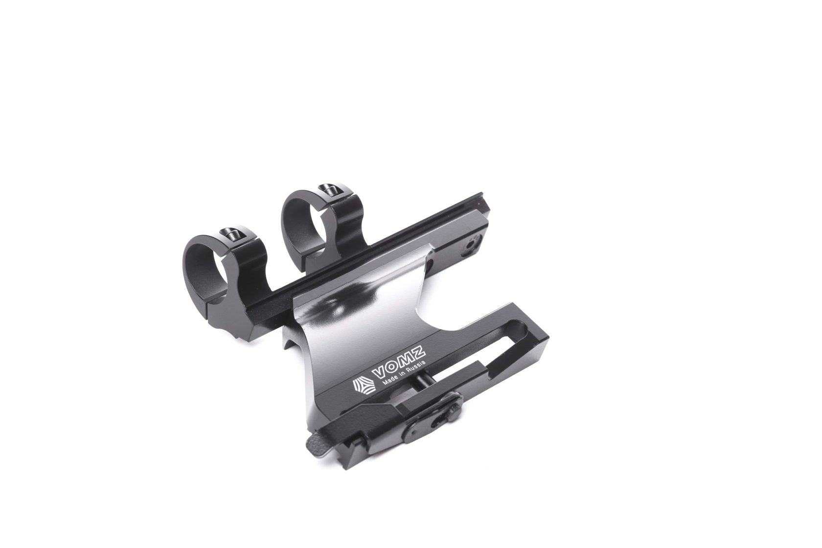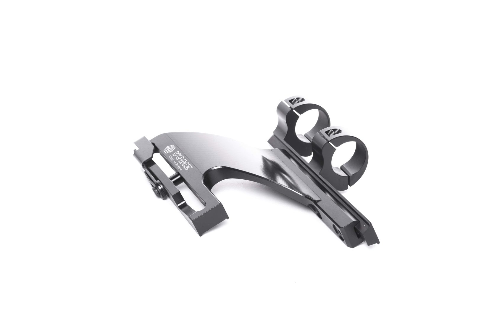 Кронштейн ВОМЗ МВЖИ.301569.043-1 предназначен для установки прицелов с посадочным диаметром 30 мм на карабины "Тигр", "СКС", "Вепрь", "Сайга". Кольца являются съемной частью и могут фиксироваться в одном из трех положений на направляющей кронштейна.