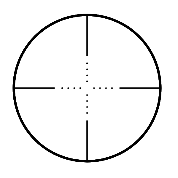 - Прицельная сетка Mil-Dot (ІІ фокальная плоскость) вытравлена на стекле для большей прочности, откалибрована при 4х