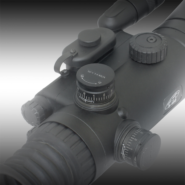 Регулировка поправок осуществляется с помощью двух удобных барабанчиков. Быстро сделать необходимые поправки можно с помощью баллистической сетки Mil-Dot. Автоматическая система регулировки яркости быстро настроит оптимальную яркость по внешнему освещению, а при высокой вероятности засветки ЭОП, выключит прибор.