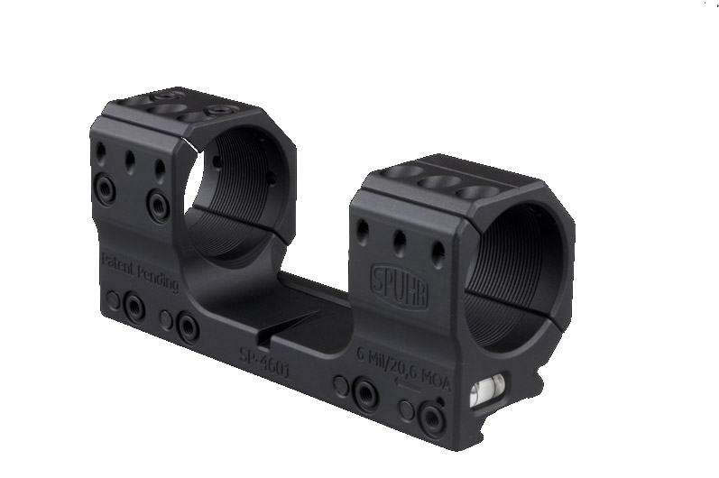Тактический кронштейн SPUHR D34мм с наклоном 6MIL/20.6MOA (SP-4601) предназначен для установки оптических прицелов с диаметром центральный трубки 34 мм на основание Picatinny. Семь точек Spuhr Interface™ позволяют установить с помощью адаптеров более 40 различных аксессуаров (коллиматорных прицелов, дальномеров и др.) прямо на кронштейн. Кольца срезаны по диагонали для увеличения видимости баранчиков ввода поправок высоты и горизонтали. Встроенный пузырьковый уровень позволит избежать заваливания винтовки.