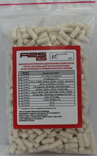 Купить «Войлочные патчи A2S GUN, 5,5 пневматика, .22LR, диаметр 6,0 мм, уп. 80 шт. (A2S-6.0-80)» легко — просто позвоните по телефону